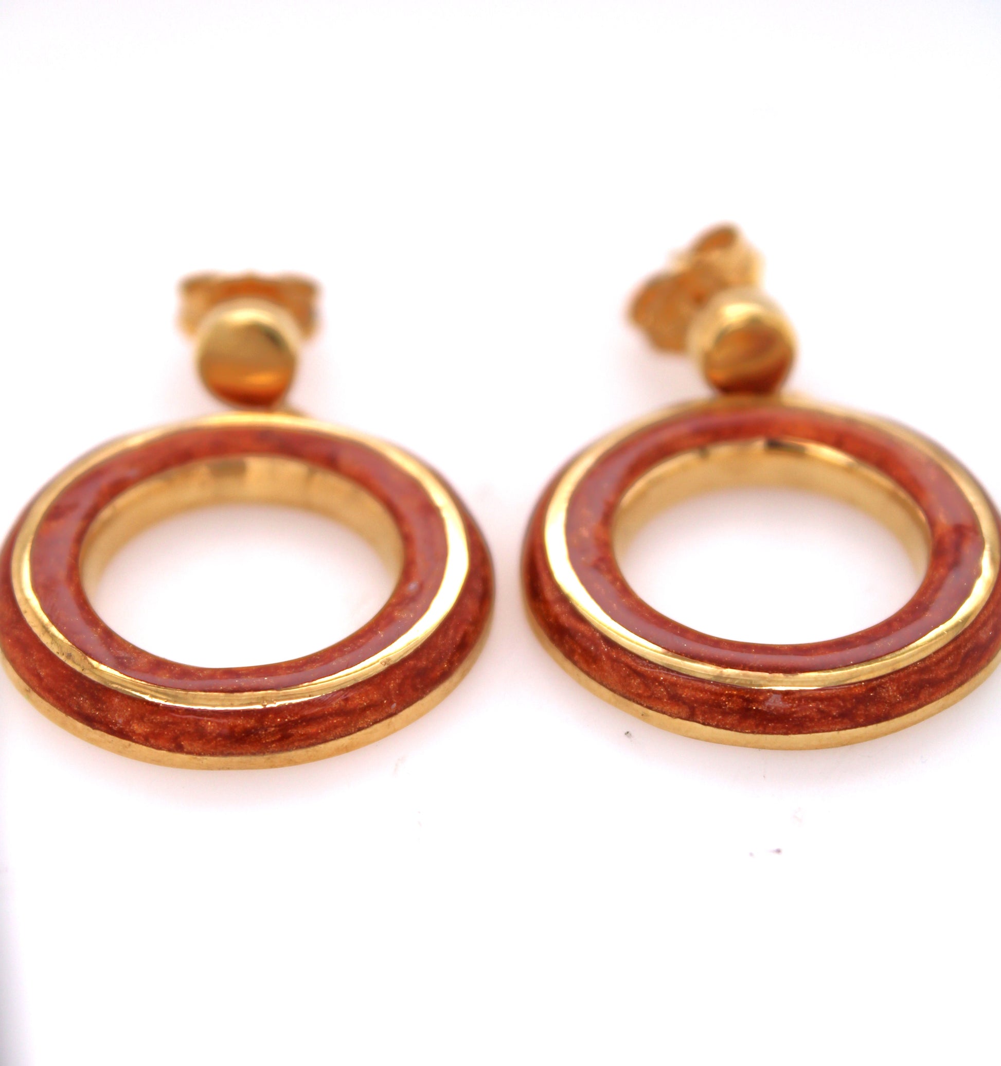 Orecchini in argento 925 placcato oro 23 Kt con trattamento anti- turnish e rifiniti con composto di ceramica ibrida colorata.